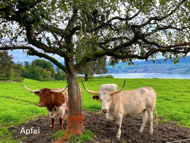 本日の画像は、チューリッヒ湖岸のさんぽ道を散策中の昨日の光景です。チューリッヒ市内から電車で、30 分とはかからない郊外の街なのですが、牧場が···